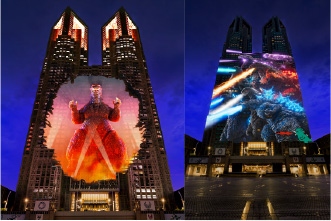 东京都厅1号本楼被用作投影映射的舞台,通过光影和音效营造出丰富多彩的艺术体验。影片《哥斯拉袭击东京》和《东京哥斯拉》将于周六、周日及节假日晚上放映。